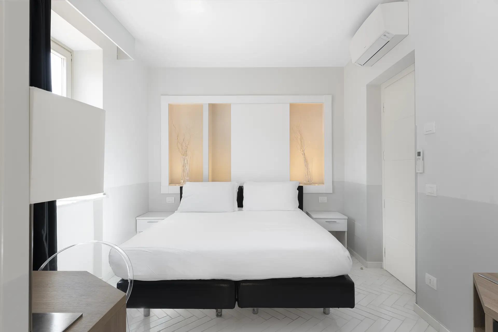 La Camera Standard è una soluzione elegante e raccolta, perfetta per chi cerca riservatezza senza rinunciare a comfort moderni. Con i suoi 17 m² e l’arredo curato, offre un soggiorno piacevole per due ospiti. Letto matrimoniale o due letti separati su richiesta.